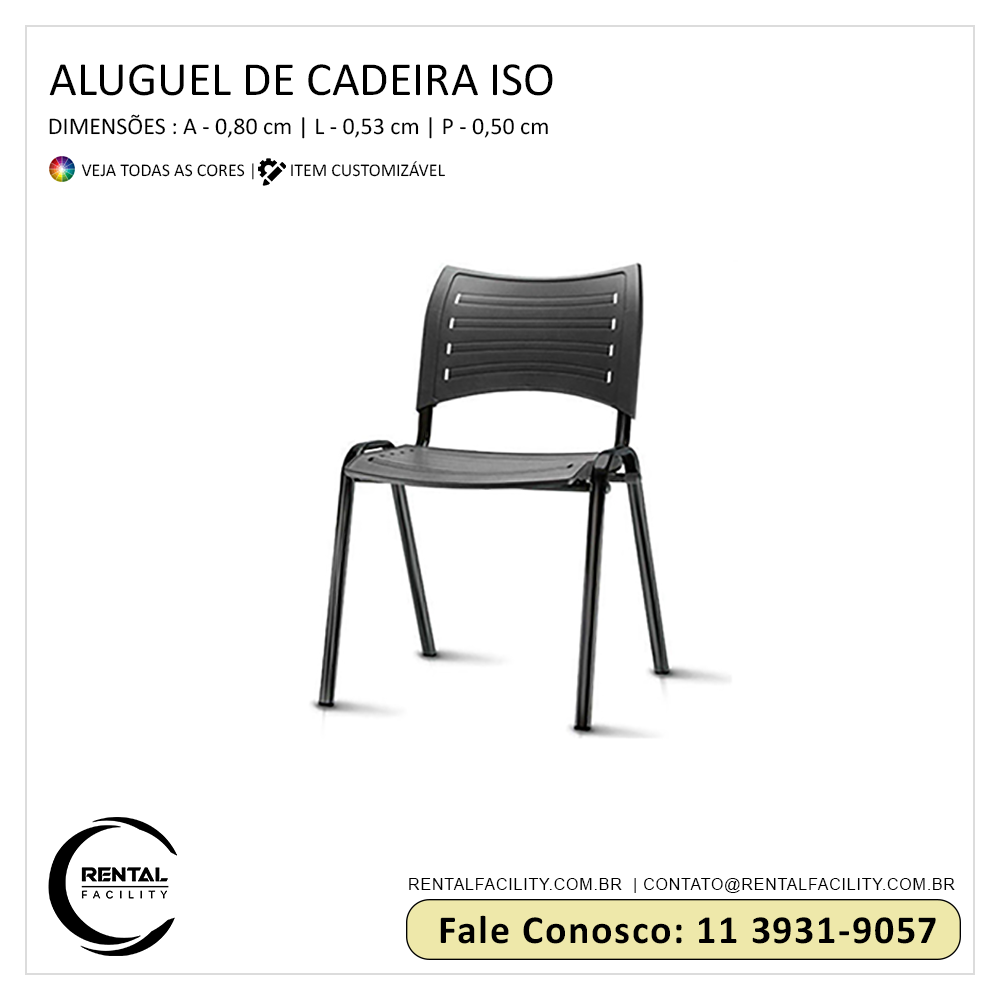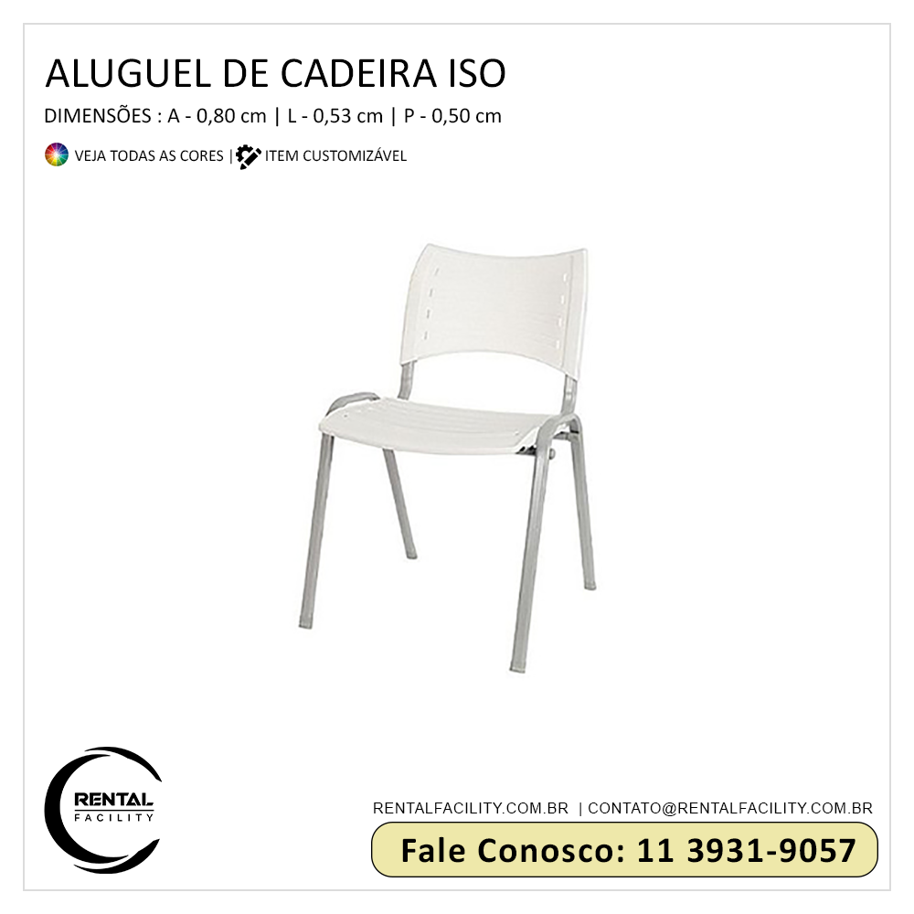 Tudo o que você precisa em locação de cadeiras ISO para festas e eventos, a Rental Facility disponibiliza, incluindo o maior sortimento em locação de móveis dos mais variados tipos e modelos, incluindo cadeiras design,que sempre conferem requinte e distinção aos eventos sociais e empresariais.