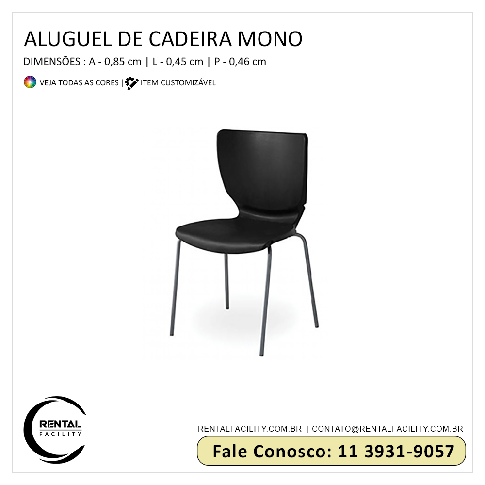 Tudo o que você precisa em locação de cadeiras Mono para festas e eventos, a Rental Facility disponibiliza, incluindo o maior sortimento em locação de móveis dos mais variados tipos e modelos, incluindo cadeiras design,que sempre conferem requinte e distinção aos eventos sociais e empresariais.