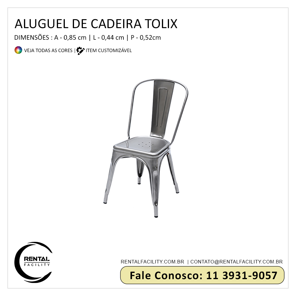Fale conosco e veja porquê a Locação de Cadeiras Tolix com a Rental Facility é sua melhor opção!